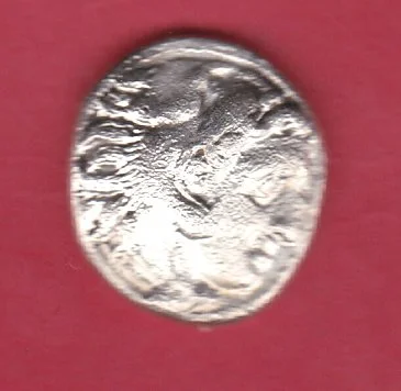 Description avers : Tête tourelée de Tyché à droite, les cheveux longs.